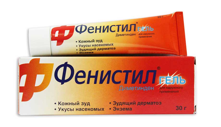 המוצר הידוע והמוכח ביותר הוא ג'ל פניסטיל. פעולתו מבטלת במהירות את כל ההשלכות של עקיצת (גירוד, צריבה), ממזערת דלקת ומפחיתה אדמומיות. למוצר יש השפעה אנטי-היסטמינית בולטת, מה שמפחית את הסיכון לתגובה אלרגית. יש למרוח בעדינות את האזורים הנגועים בגוף 3-4 פעמים ביום.