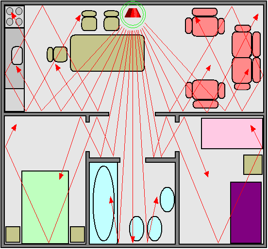 - להיפך, חדרים ריקים, רהיטים עשויים עץ ופלסטיק תורמים לפיזור טוב יותר של קרינה;
