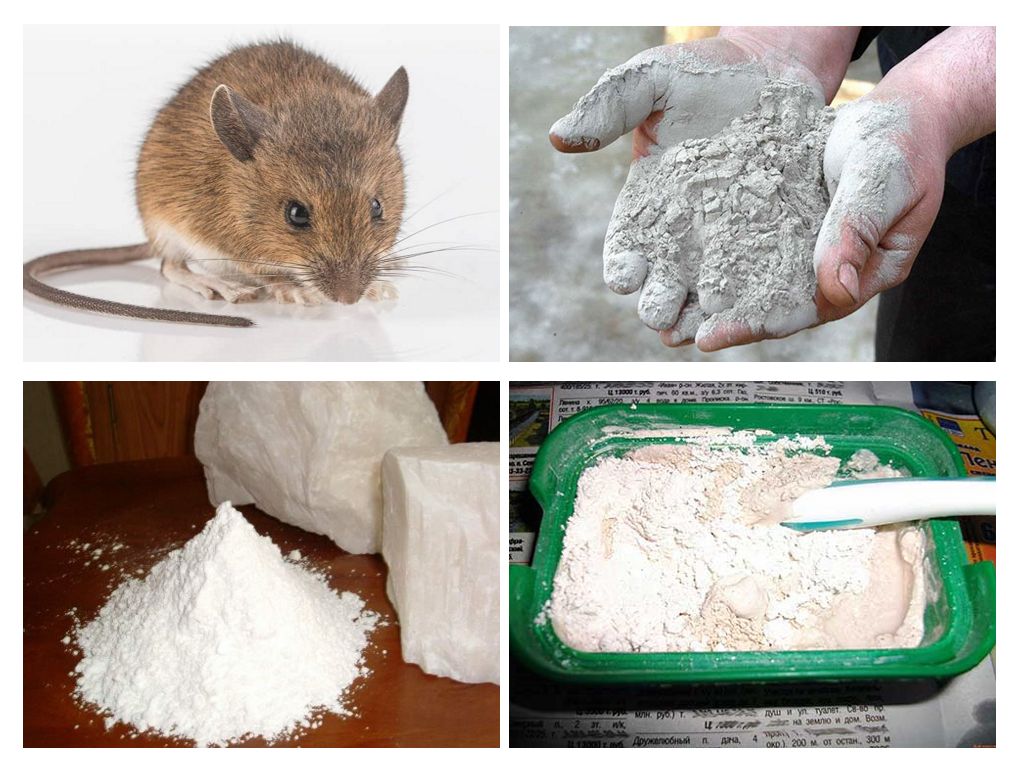 - הכינו תערובת יבשה של קמח וגבס. שימו מים בקרבת מקום. לאחר שיאכלו את התערובת, המזיק ישטוף אותה במים, והגבס יתקשה.