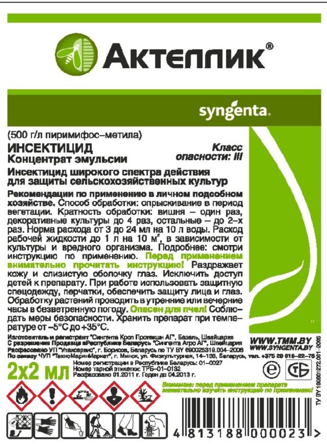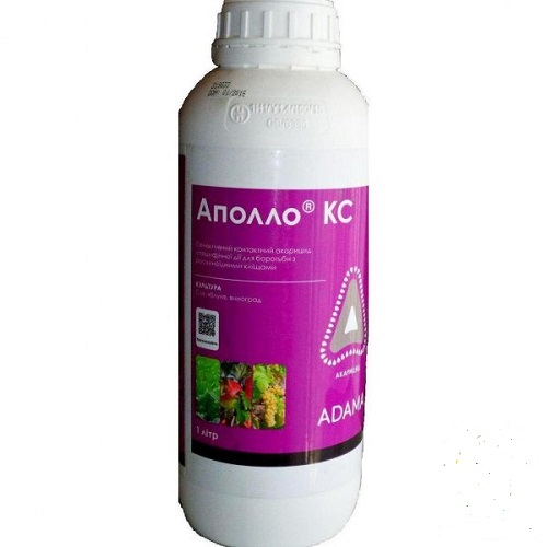 - אפולו. יש לו השפעה ארוכת טווח (עד 90 יום) והוא מכיל את החומר הפעיל קלופנטזין. הוא כמעט בטוח עבור רוב החרקים המועילים, הדבורים ובני האדם.