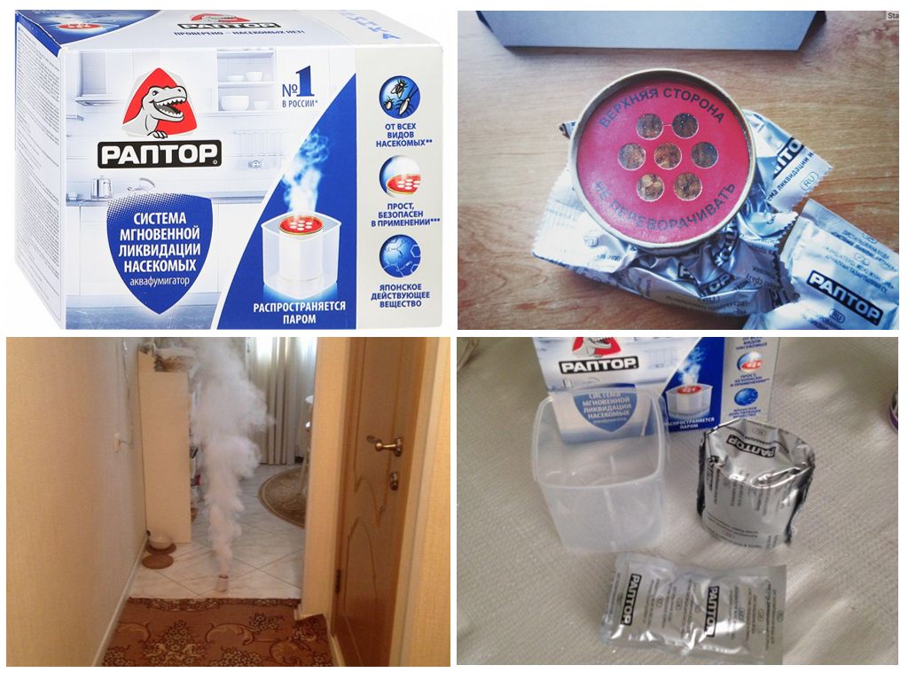 ה-Raptor aquafumigator הוא אוניברסלי ומשמיד סוגים שונים של חרקים, כולל פשפשים. עקרון הפעולה הוא ייצור קיטור קר ספוג בחלקיקים של חומר קוטל חרקים. הוא יכול לטפל גם במשטחים שקשה להגיע אליהם. המרכיב הפעיל העיקרי שלו, ציפנוטרין, בעל השפעה משתקת עצבים על טפילים, והורג גם זחלים. האדים אינם מזיקים לחלוטין לבני אדם ולחיות מחמד.