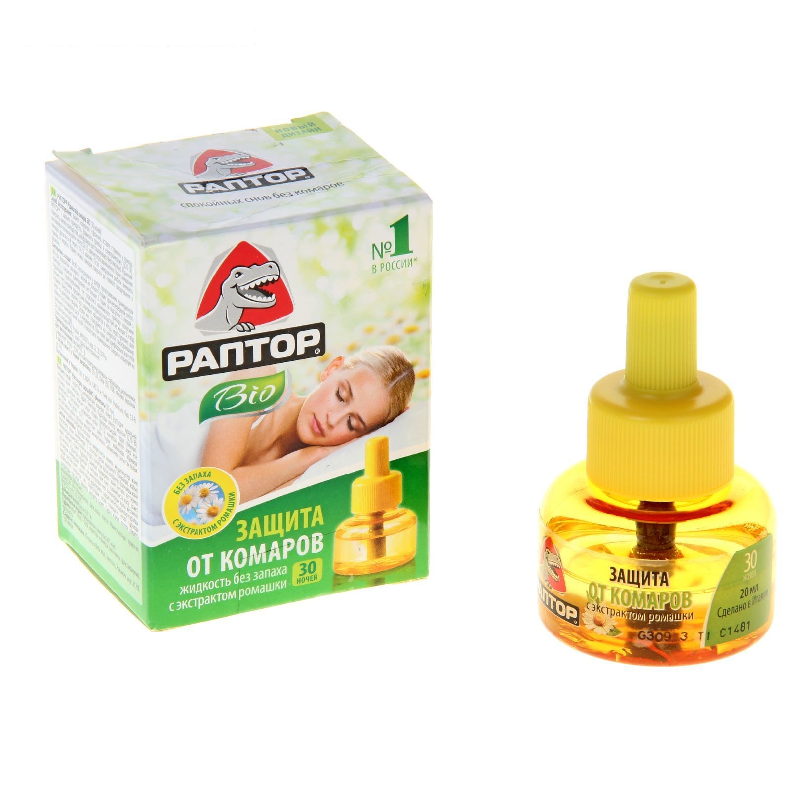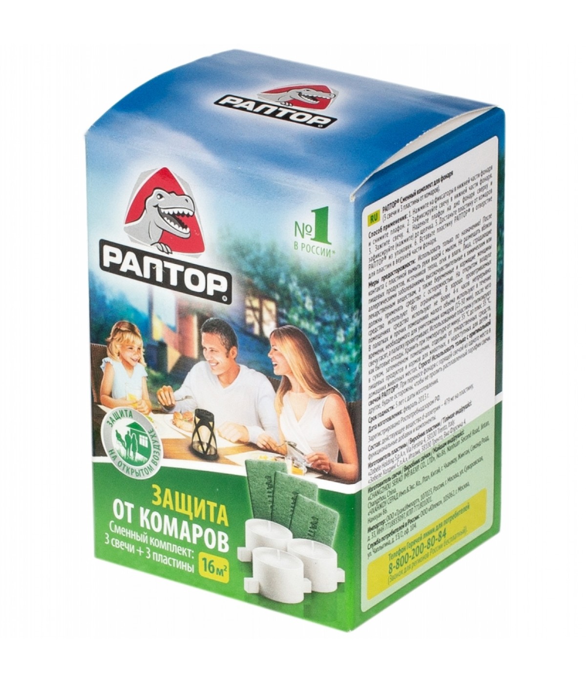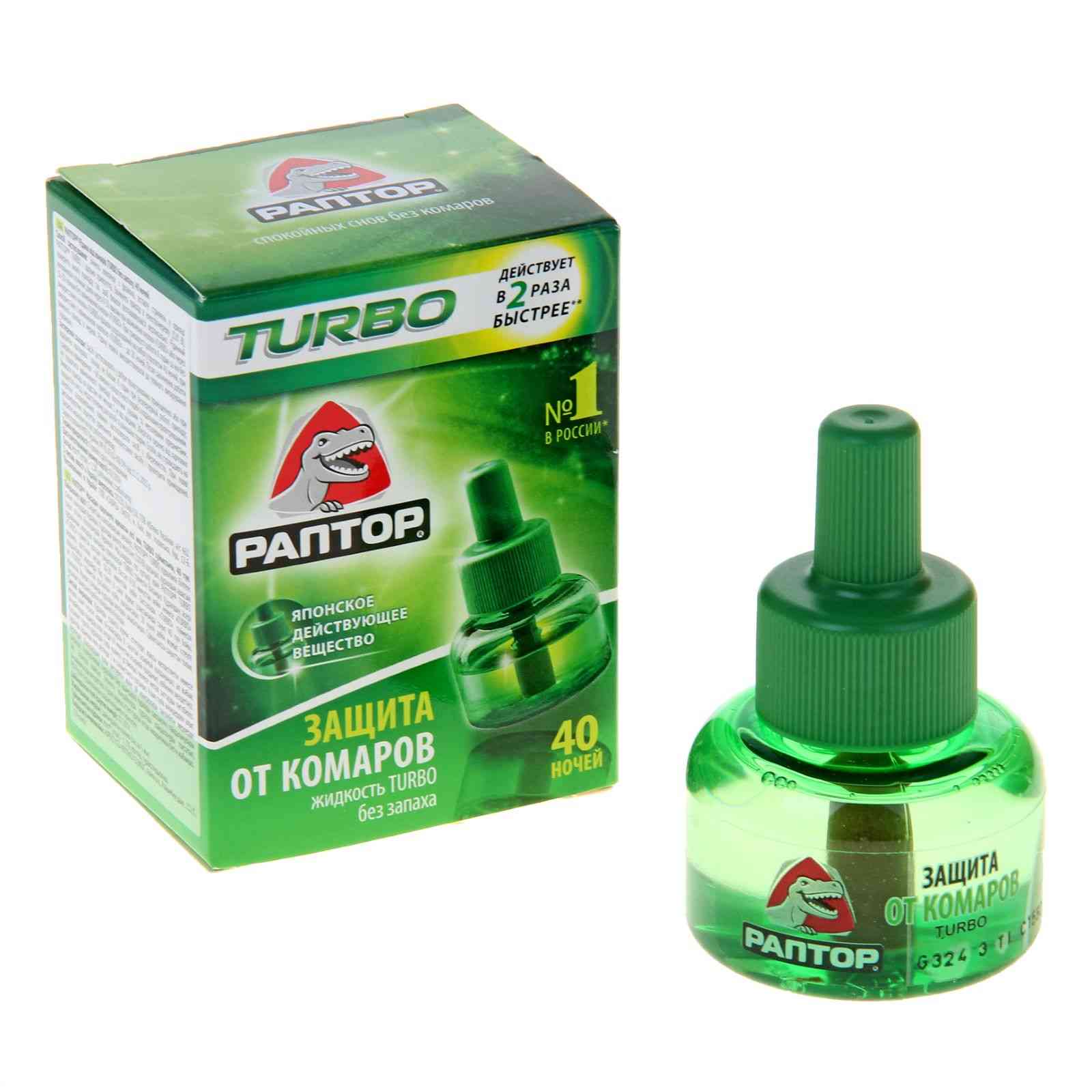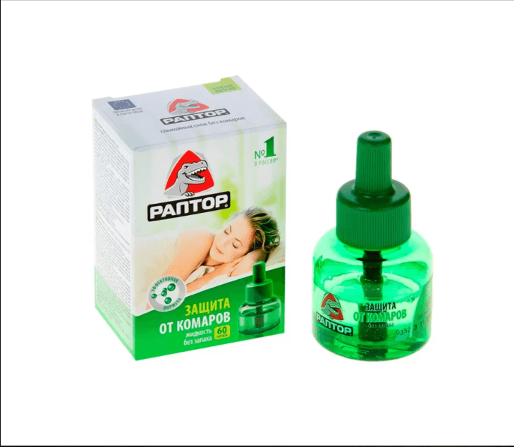 כל נוזלי Raptor ארוזים בבקבוקים שקופים ועמידים בפני שבירה. חיי המדף שלהם הם חמש שנים. נועד להגן על אנשים מפני יתושים בתוך הבית.