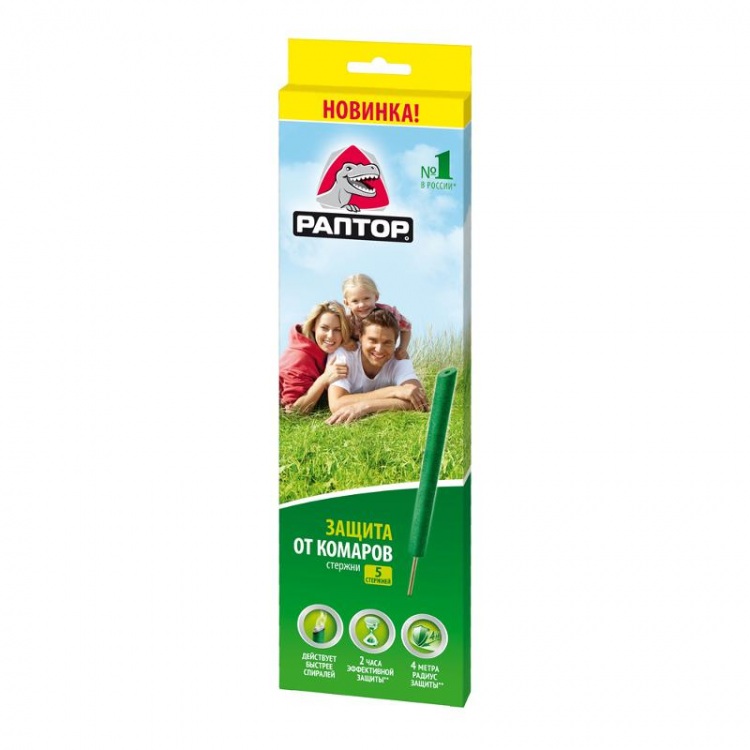 חכות ראפטור פועלות באותו אופן כמו ספירלות, אך יש להן טווח פעולה גדול יותר - 4 מטרים, אך תקופת הגנה קצרה יותר - שעתיים בלבד. בקצה המוט יש גבעול מתכת המאפשר להחדיר את המוצר לאדמה. בנוסף ל-d-allethrin ובסיס עץ, המוצר מכיל צבעים ושמן ציטרונלה. בהשוואה לספירלות, מוטות פועלים מהר יותר.