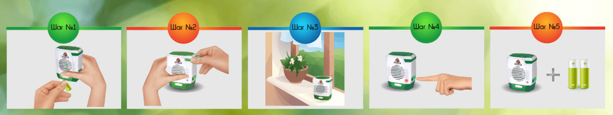 דוחה יתושים הוא מכשיר פלסטיק המכיל חומר מיוחד שטופל בקוטל חרקים. החומר מורכב ממולקולות קלות משקל הממלאות את החדר באופן מיידי באוויר במחזור. זרימת האוויר מסופקת על ידי מערכת מאווררים המותקנת במכשיר. חלקיקי קוטל חרקים שוקעים על יתושים חולפים, חודרים לגופם והורגים אותם מבפנים.