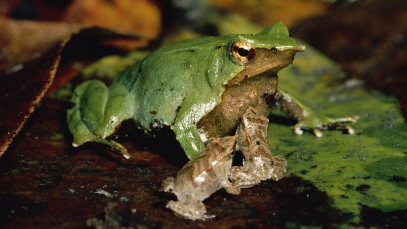 היפהפיות התוססות הללו מתגלות כאמהות למופת. הנקבות מטילות רק ביצים ואז נעלמות מחייהם של גוזליהן ואבותיהן. הדו-חיים הללו מעבירים את חובות האימהות לזכרים, שנאלצים לשאת את הביצים ולטפל בגוזלים לבדם עד שהצפרדעים הופכות לעצמאיות.
