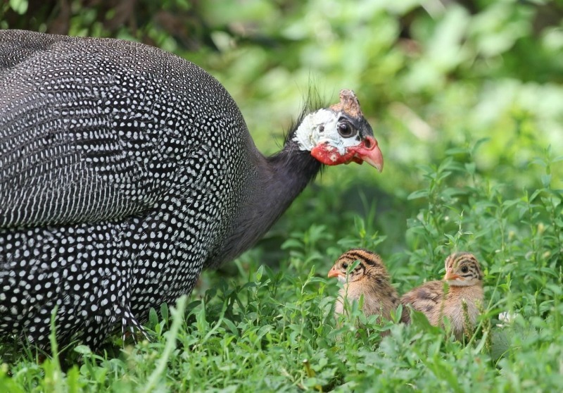 אמהות עופות גינאה הן ביישניות מאוד. אם הן נחשפות לסכנה, הן עלולות לנטוש את ביציהן ולא לחזור לעולם. לכן, מגדלי עופות נוהגים להוציא את הביצים ולהכניס אותן לאינקובטור.