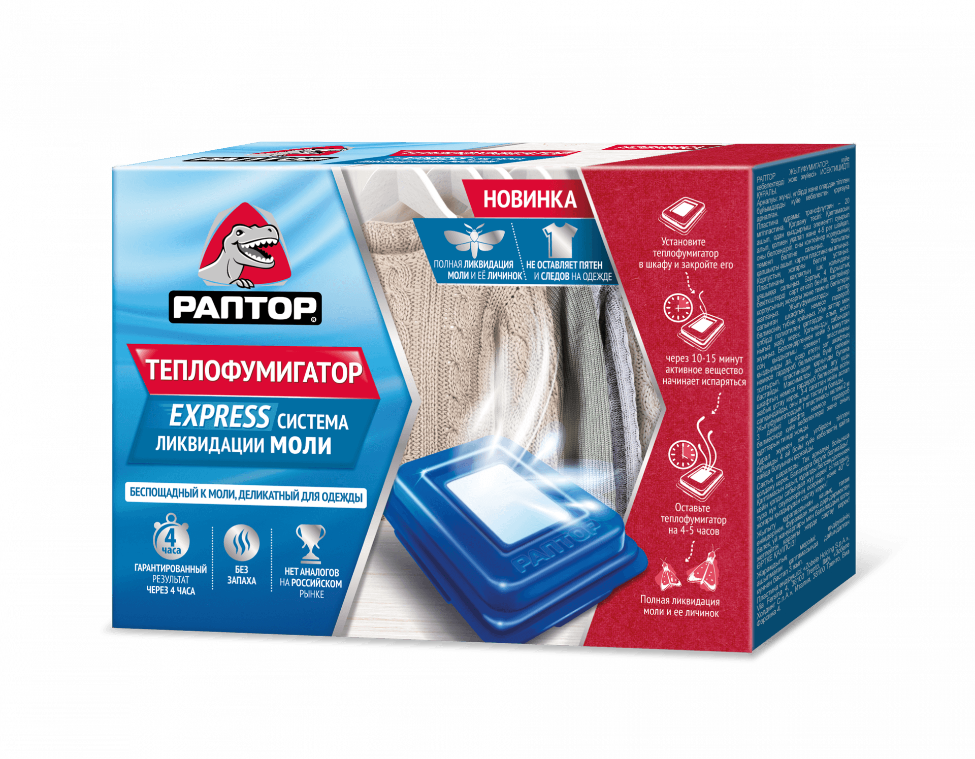 לרוע המזל, העשים המגעילים האלה צצים בבית מדי פעם... אתם מטפלים היטב בבגדים שלכם ומנסים לשים את כל הפריטים הטבעיים בכיסויים, אבל במוקדם או במאוחר אתם עדיין רואים את העשים המגעילים האלה. כמובן, אתם ממש לא רוצים להוציא את סוודר הצמר האהוב עליכם בחורף ולמצוא בו חורים... אז תמיד יש לנו תרסיס דוחה עש בבית, לכל מקרה. עכשיו יש לנו ראפטור על שידת הלילה. לא השתמשנו בו כבר זמן מה; כמו שאמרתי, עשים לא מופיעים לעתים קרובות. אבל יום אחד זה באמת עזר. זר פרחים מיובש - ובכן, מוכרים כאלה, אני חושב שקנינו אותם באיזה חג דתי - היה נגיעות עש. בהתחלה לא הבנתי מה זה - הוא פשוט עף מסביב, מאיפה זה הגיע? ואז חשבתי להסתכל פנימה - אוי, אימה! הוא היה מלא בדברים המגעילים האלה. בסוף, הזר, כמובן, הלך לפח. סגרתי את כל החלונות, לקחתי תרסיס, וריססתי כמעט הכל בבית - ארונות, שטיחים. כמובן, אף אחד לא נשאר בבית. מוצרים כאלה לא ממש מועילים, והריח חריף ולא נעים (למרות שכולם כן, בין אם ראפטור או כל אחר). העשים נעלמו, באמת, ולזמן ארוך. אז אני מאשר את יעילותו וממליץ לשמור אותו בבית לכל מקרה.
