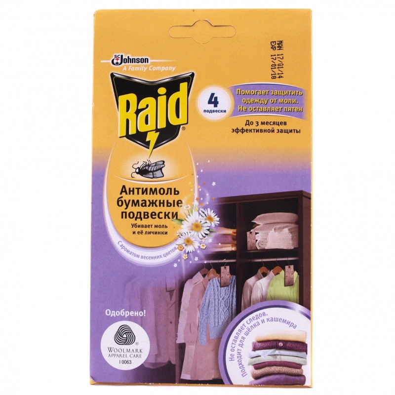 - קולבי נייר של Raid. אלו הם הכלאה בין סדינים לחלקי וו. סדיני הקרטון מכילים חורים עגולים, המשמשים לחיבורם לקולבי בגדים. הספגה מכילה טרנספלותרין, קוטל חרקים. מספר קולבים משמשים לתליית מעילי פרווה יקרים ומעילי קשמיר. למוצר יש ניחוח פרחוני, אך חריף למדי. ההשפעה המובטחת של שימוש בקולבי נייר אלה היא 3 חודשים. מחיר: 150 רובל לחבילה (12 קולבים).