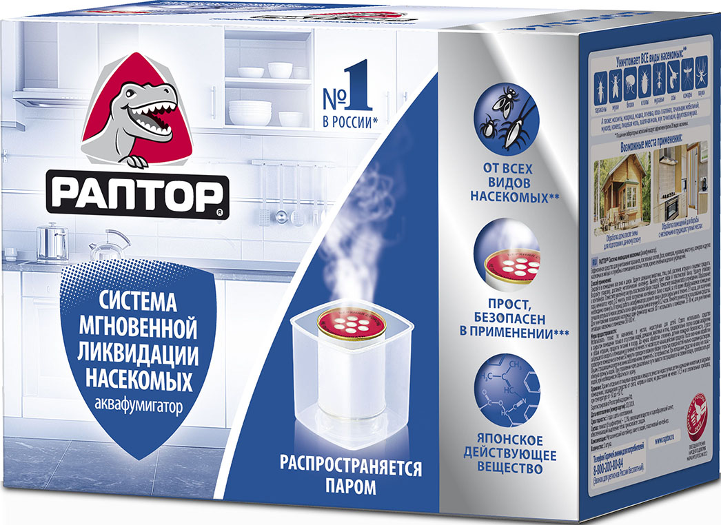 מכשירי אידוי עשן יכולים להיות בצורת סליל; כאשר הם נשרפים, הם פולטים אדים רעילים ודוחים חרקים. שיטה זו הומצאה ביפן. פצצת העשן מונחת על הרצפה באמצע החדר (מטבח), במיכל מתכת עמוק כדי למנוע ממנה ליפול החוצה, ולאחר מכן מדליקים אותה. עשן מתחיל להיפלט, ממלא את החדר וחודר לסדקים קטנים. בשלב זה, יש לפנות את החדר. לאחר מספר שעות, יש לאוורר היטב את החדר ולנקות אותו בלחות. ההליך חוזר על עצמו לאחר שבועיים. פצצת העשן Raptor משמידה אוכלוסיות חרקים. מותגים פופולריים כוללים את "Tikhiy Vecher", "Tsifum" ו-"City". המוצר יעיל, אך ריח לא נעים נשאר עד שבוע. המוצר עלול להיות מסוכן לאנשים עם אלרגיות ואסטמה.