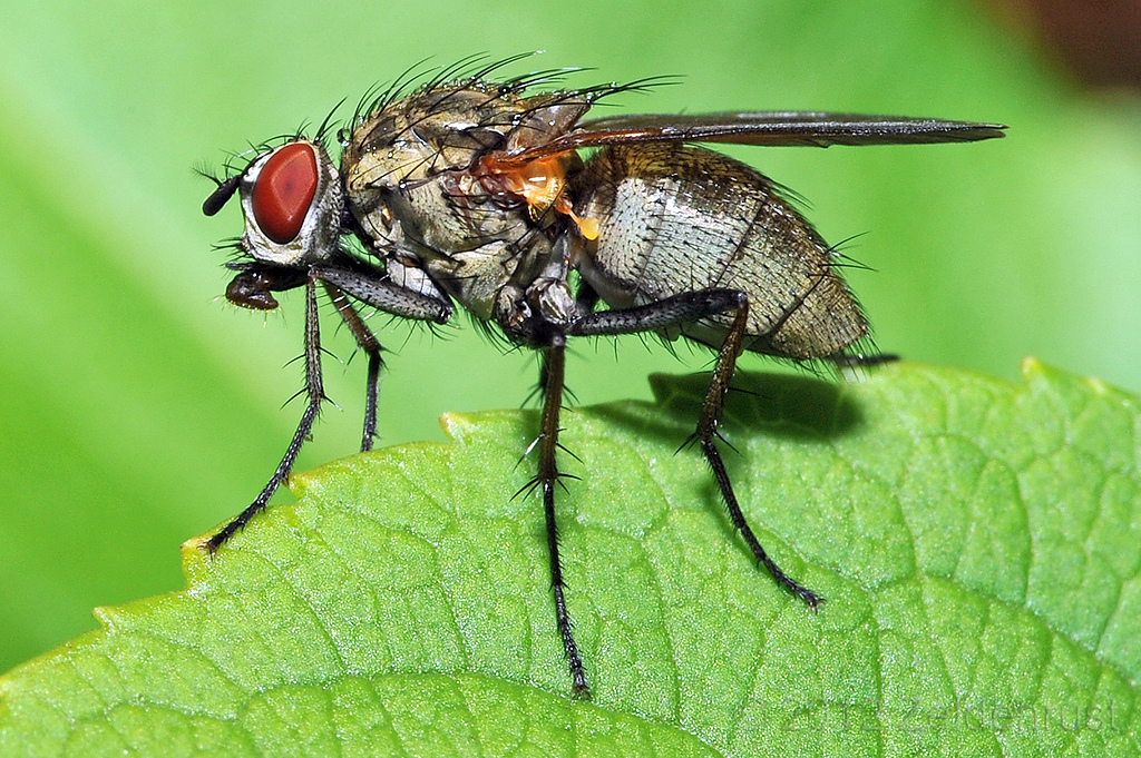 הזבוב הירוק (או זבוב הפגר) נחשב בצדק לאחד החרקים היפים ביותר: יש לו גוף אזמרגד מסודר ומבריק ועיניים חומות גדולות המשלימות את כנפיו המעושנות. לכל רגליו יש זרועות, המושכות חיידקים ומיקרואורגניזמים, אותם הזבוב נושא למרחקים ארוכים.