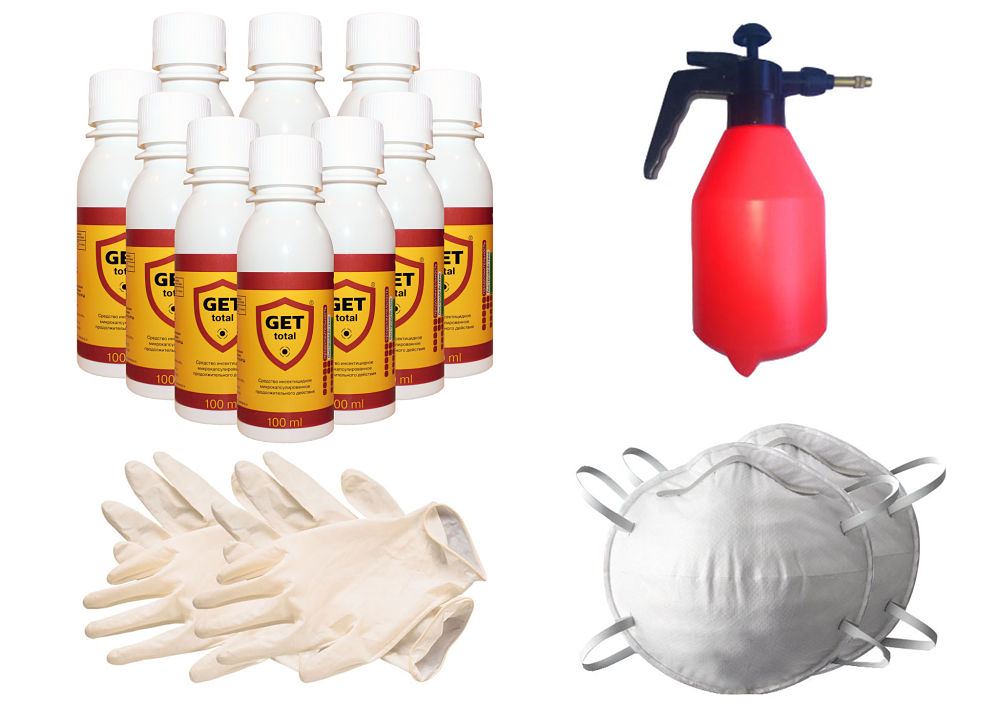 לפני הטיפול, יש לקבוע את כמות התכשיר הנדרשת. בקבוק אחד של Get Total מספיק לחדר של 20-22 מ"ר.