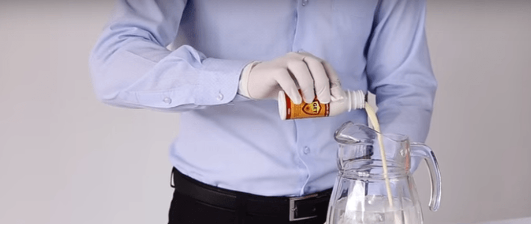 - הכינו בקבוק ריסוס ומיכל מתאים למדוד לתוכו את כמות המים הנדרשת. דללו את התרכיז בהתאם לפרופורציות המפורטות בהוראות.