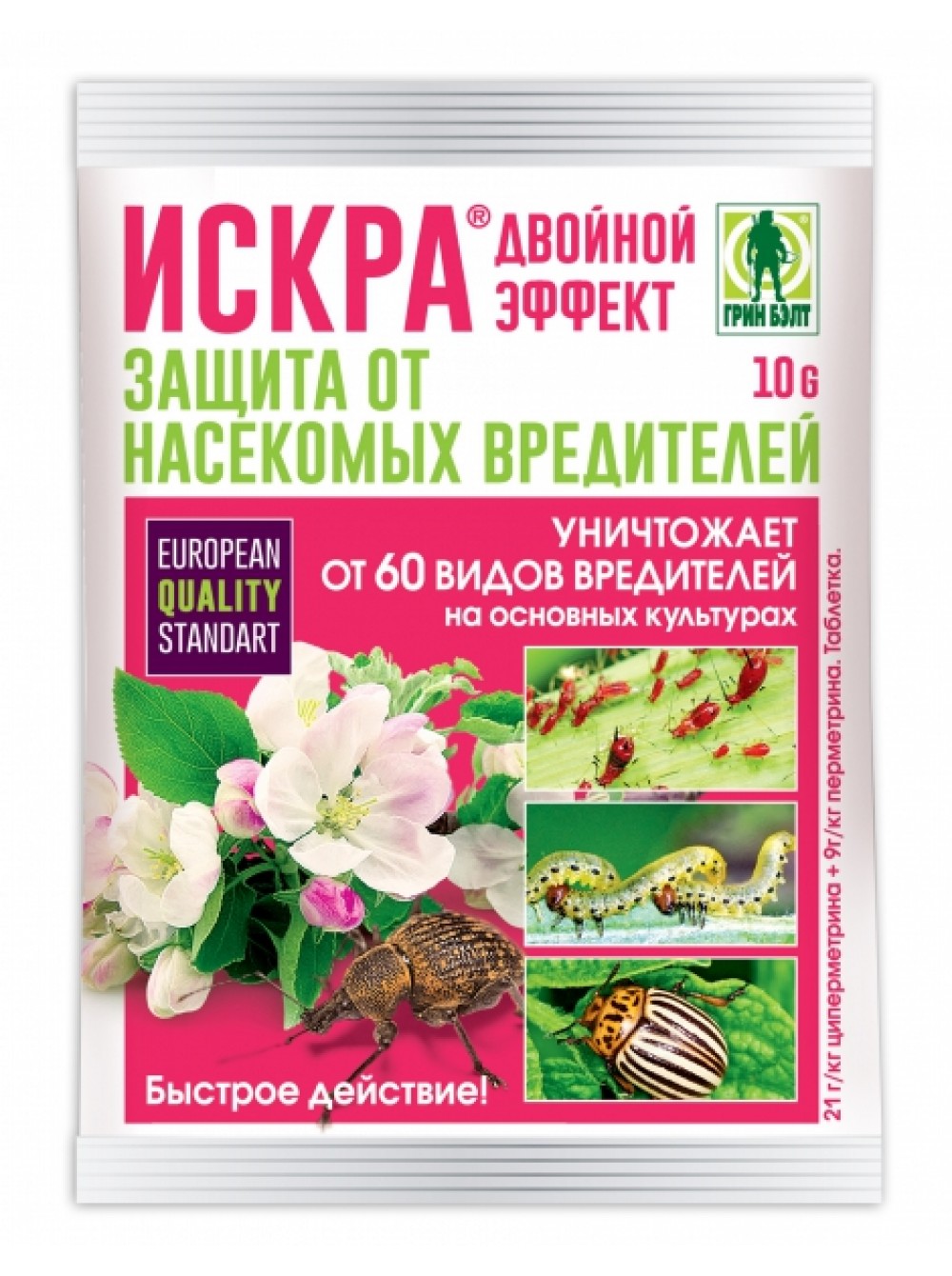 מוצר זה הוא קוטל חרקים כפול פעולה יעיל שניתן להשתמש בו כדי לשלוט ביותר מ-60 סוגים של מזיקים על פרחים, פירות יער וירקות, כולל קרדית עכביש. בטוח לבני אדם ובעלי חיים. המרכיבים הפעילים של איסקרה הם ציפרמתרין ופרמתרין. חשוב לציין, שהוא מכיל גם דשן אשלגן לחלקי צמח פגומים. הוא מגיע בטבליות של 10 גרם. להכנת התמיסה, יש להמיס כל טבליה ב-10 ליטר מים.