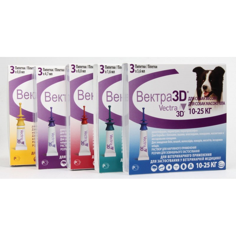 Vectra 3D היא תרופה למגע מקומי, לא סיסטמית. טיפות אלו, המיושמות על השכמות, בעלות תכונות קוטלי חרקים ומכילות שלושה רכיבים פעילים: