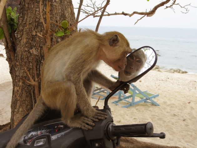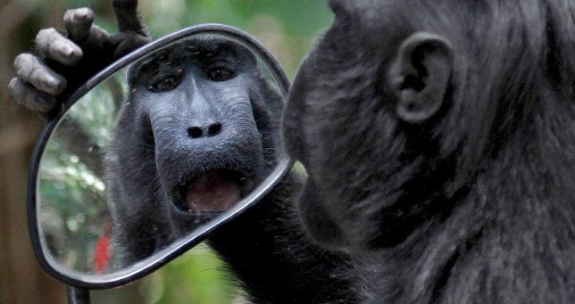 ניסויים הראו ששימפנזים מזהים את עצמם במראות. אם משהו במראה שלהם השתנה, הם נוגעים באזור הזה.
