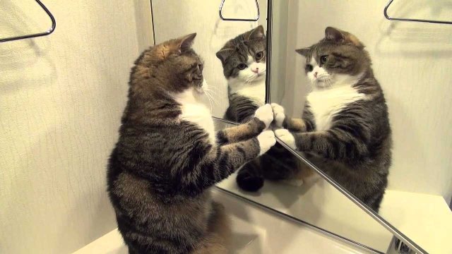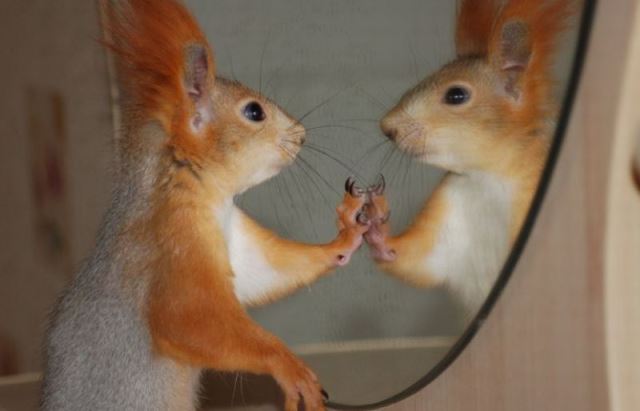 אז, עבור כל מיני בעלי החיים והציפורים, השתקפות במראה היא פשוט עוד בעל חיים. היוצא מן הכלל הם קופי האדם הגדולים.