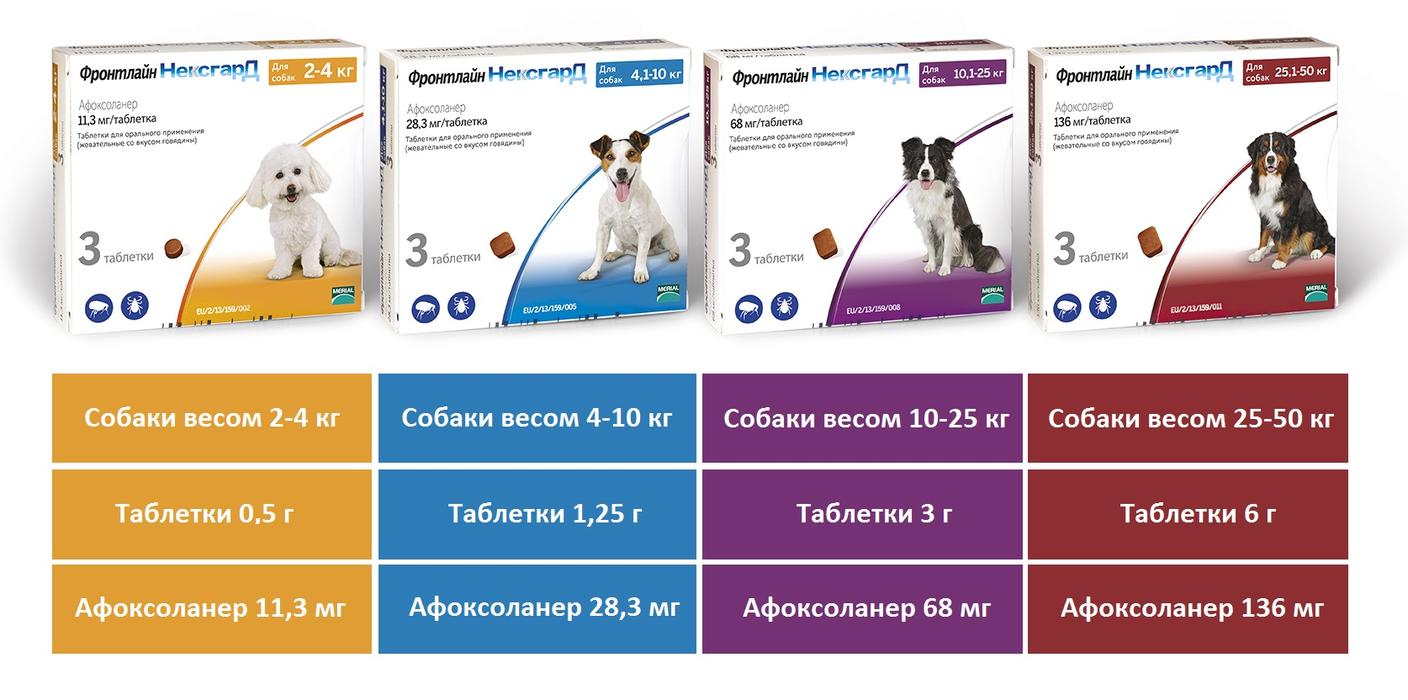 טבלה: מינון טבליות Frontline Nexgard לפי משקל הכלב