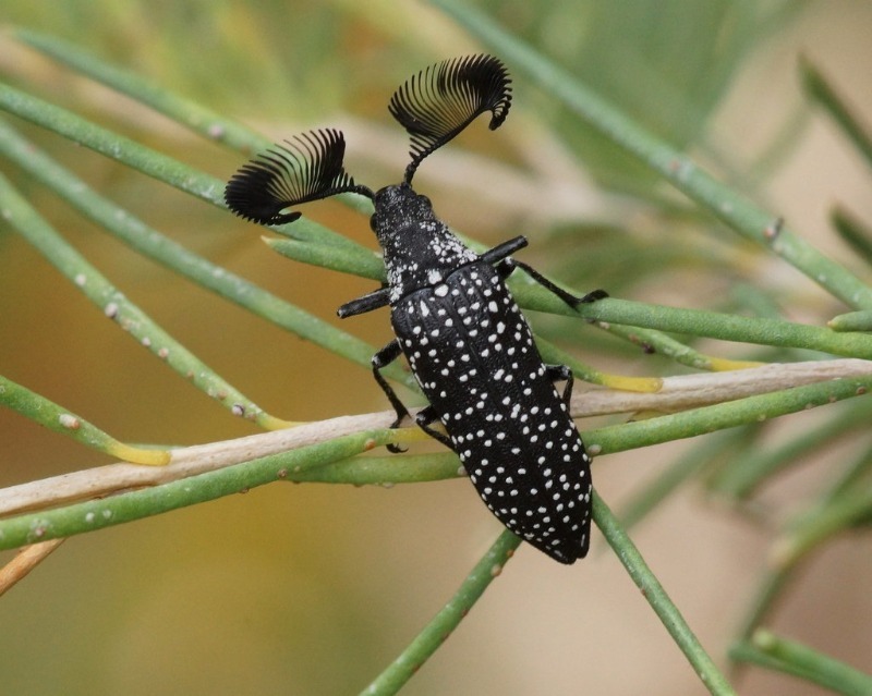 מחושים ייחודיים ויפים של החיפושית מעניקים לה מראה מדהים. הם דומים למחושים מעוקלים בעלי מקטעים רבים. מחושי הזכר גדולים ורכים יותר, שכן הם עוזרים לו למצוא בן זוג. בגלל מחושיה, החיפושית ידועה גם בשם חיפושית מכ"ם.