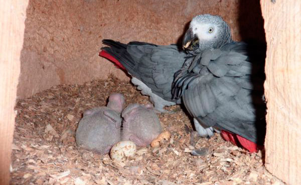 אפרוחים אפורים אפריקאים הגדלים במדגרות הם אדיבים במיוחד, חיבה וידידותיים. הם הופכים לחברים אמיתיים ואהובים על כל בני המשפחה. הם מסתגלים לתנאים חדשים בקלות ובמהירות יוצאות דופן, וציפורים צעירות מתחילות לדבר עוד לפני גיל חמישה חודשים.