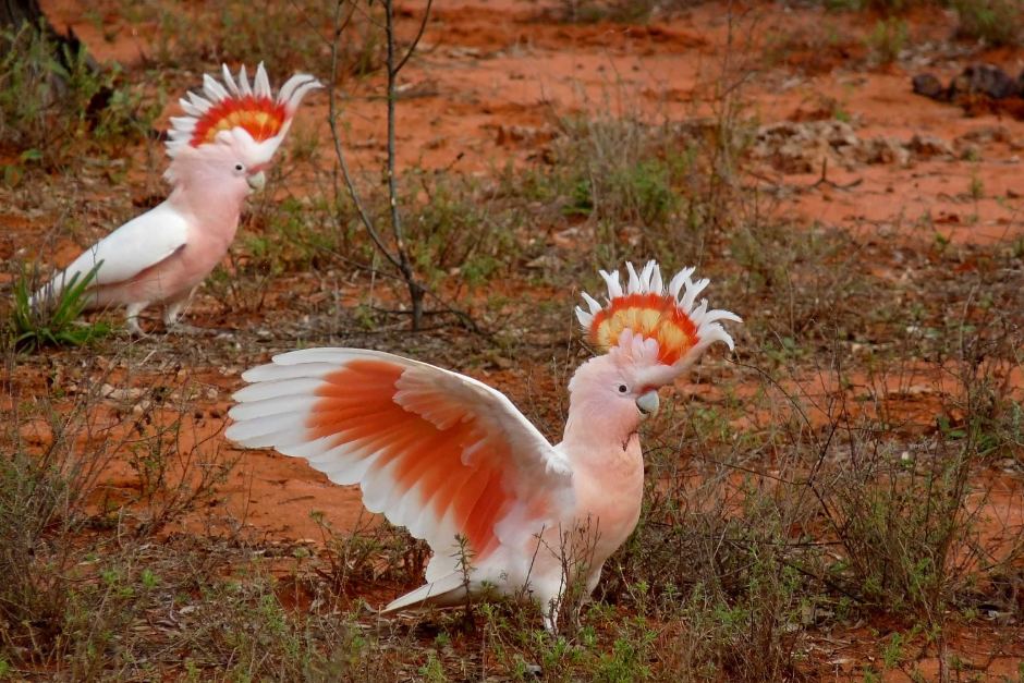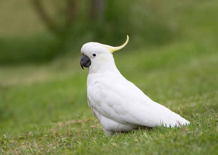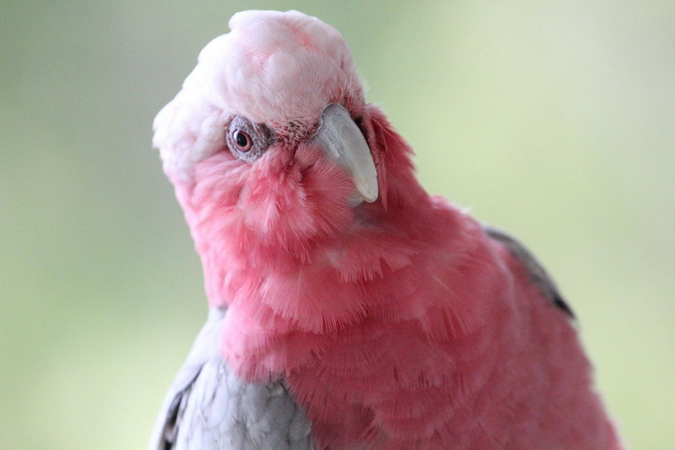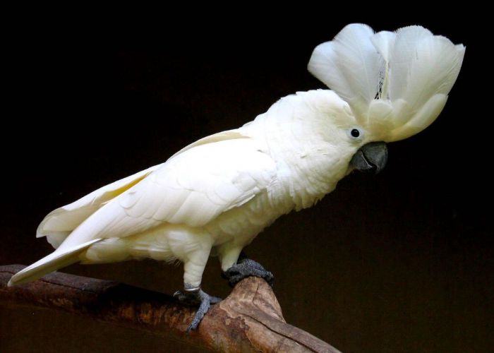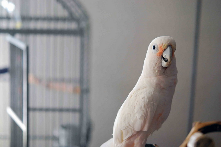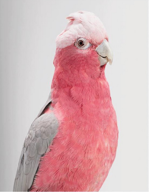 תוכי עם נוצות לבנות וורודות. תוכי בוגר מגיע לאורך של 60 ס"מ ומשקלו 600 גרם. מחיר משוער: 3,000 דולר.